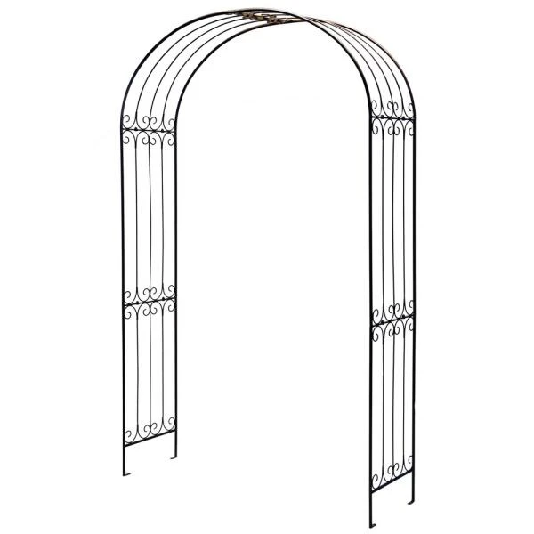 Stevige metalen rozenboog met roestlook. Deze boog staat mooi over een tuinpad, aan een deuringang of bij een doorgang in een haag.